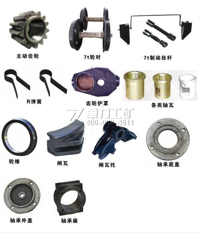 主動(dòng)齒輪、7t輪對(duì) 7t制動(dòng)絲桿 R彈簧 齒輪護(hù)罩 各類(lèi)軸瓦 輪緣 閘瓦 閘瓦托 軸承底蓋 軸承外蓋 軸承座