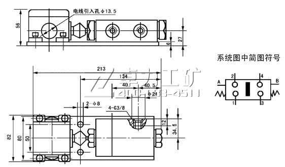 壓差開關(guān)的閥體和行程開關(guān)組裝在一塊底板上。潤(rùn)滑脂在壓力的作用下從主管道B進(jìn)入壓差開關(guān)閥體活塞的右腔,主管道A卸荷。一旦兩條主管道的壓差達(dá)到5MPa時(shí),活塞克服左腔內(nèi)彈簧力向左移動(dòng),并推動(dòng)行程開關(guān),使觸點(diǎn)1和2閉合,發(fā)出脈沖訊號(hào)至系統(tǒng)電控箱,責(zé)令換向閥換向,這時(shí)主管道A受壓,B卸荷,活塞在二端腔內(nèi)彈簧的作用下對(duì)中,行程開關(guān)觸點(diǎn)1和2斷開,觸橋處中位。系統(tǒng)開始第二周期工作,一旦主管道A和B間壓差又達(dá)到5MPa時(shí),活塞向右移動(dòng),行程開關(guān)觸點(diǎn)3和4閉合,脈沖訊號(hào)再次使系統(tǒng)中的換向閥換向,開始下次循環(huán)工作
