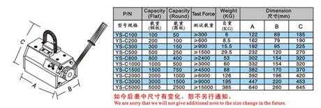 YS-C系列永磁起重器型號:YS-C100 YS-C200 YS-C300 YS-C500 YS-C800 YS-C1000 YS-C1500 YS-C2000 YS-C3000 YS-C5000
