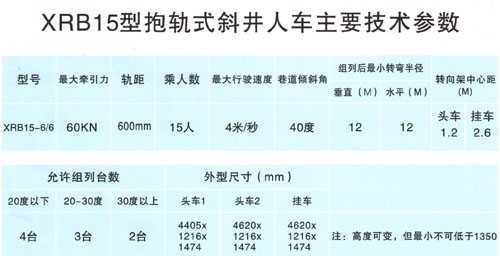 XRB15型抱軌式斜井人車技術參數(shù)