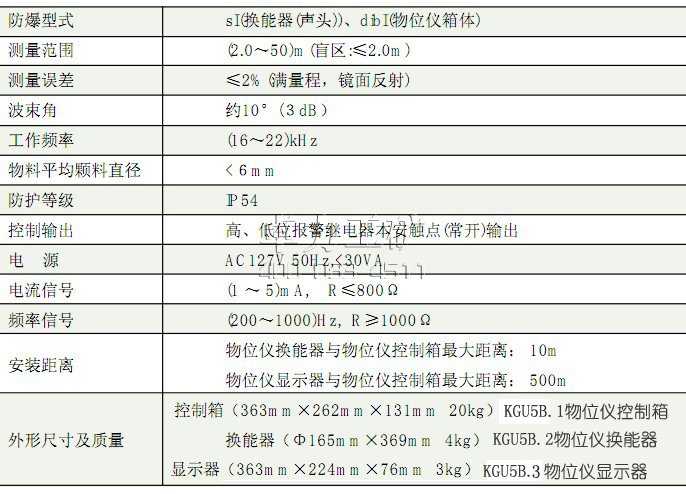 KGU5B系列礦用超聲波物位儀 它可用于煤炭行業(yè)等行業(yè)具有爆炸性危險的環(huán)境下,對顆粒、塊狀、液體等物料料倉料位進行非接觸自動連續(xù)檢測。