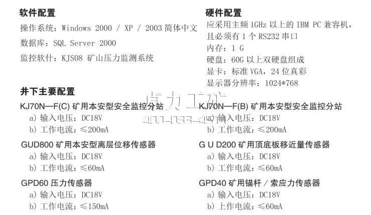 井下設(shè)備主要由KJ70N-F(B)礦用本安監(jiān)控分站、KJ70N-F(C)礦用本安監(jiān)控分站、GUD800礦用本安型離層位移傳感器、GPD60壓力傳感器、礦用錨桿/索應(yīng)力傳感器、礦用頂?shù)装逡平總鞲衅、KDW28-18礦用隔爆兼本安不間斷電源、KDW17礦用隔爆兼本安電源、KDWO。7/18-J礦用隔爆兼本安電源繼電器箱組成。
