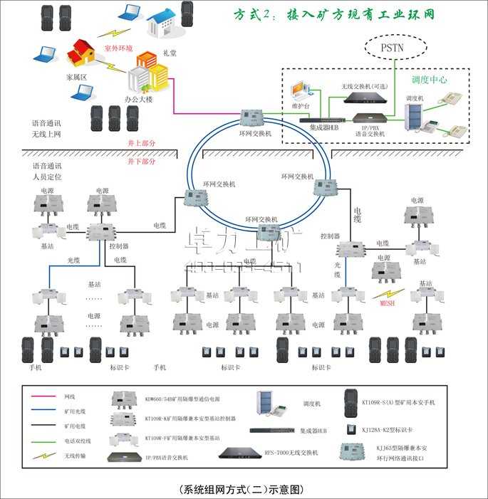 KT109R型礦用無線通信系統(tǒng)是卓力工礦與摩托羅拉公司合作開發(fā)的新一代礦用無線通信系統(tǒng)。該系統(tǒng)以光纖網(wǎng)絡(luò)為骨干(接入現(xiàn)有工業(yè)環(huán)網(wǎng)或獨立),以無線網(wǎng)絡(luò)為延伸,在煤礦井下設(shè)立若干基站,通過無線通信手段,為實現(xiàn)人員的語音通訊,人員監(jiān)測,數(shù)字化視頻監(jiān)控及環(huán)境監(jiān)測等提供了一個共用的平臺;也為實現(xiàn)生產(chǎn)調(diào)度,應(yīng)急救援與安全監(jiān)控提供良好的應(yīng)用基礎(chǔ)。