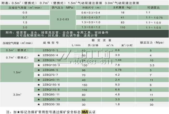 山東卓力工礦2ZBQ系列柱塞式/活塞式氣動(dòng)雙液注漿泵型號(hào)齊全,2ZBQ系列氣動(dòng)注漿泵使用壓縮空氣作動(dòng)力,可以在大淋水、高瓦斯場(chǎng)合安全使用。