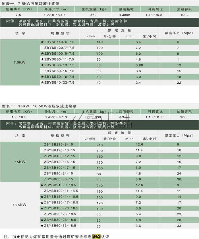 7.5KW液壓雙液注漿泵型號: