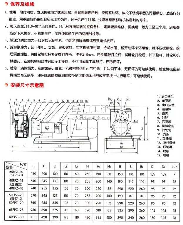 三、FPZ系列自吸泵的保養(yǎng)維修: